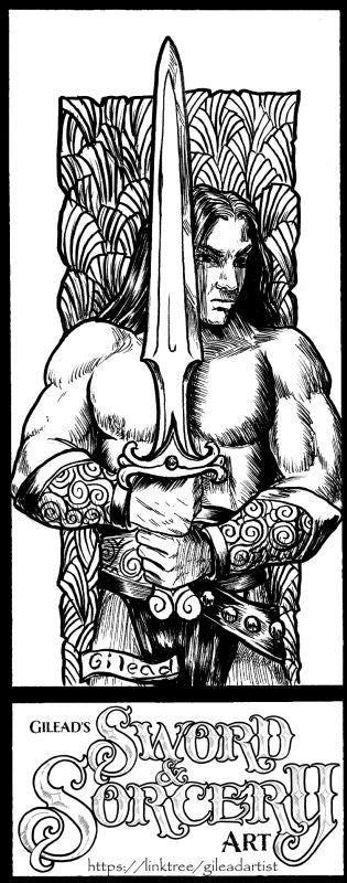 Black & white Sword & sorcery art on premium heavyweight glossy cardstock, 2 3/4" x 7"