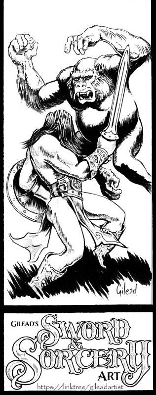 Black & white Sword & sorcery art on premium heavyweight glossy cardstock, 2 3/4" x 7"